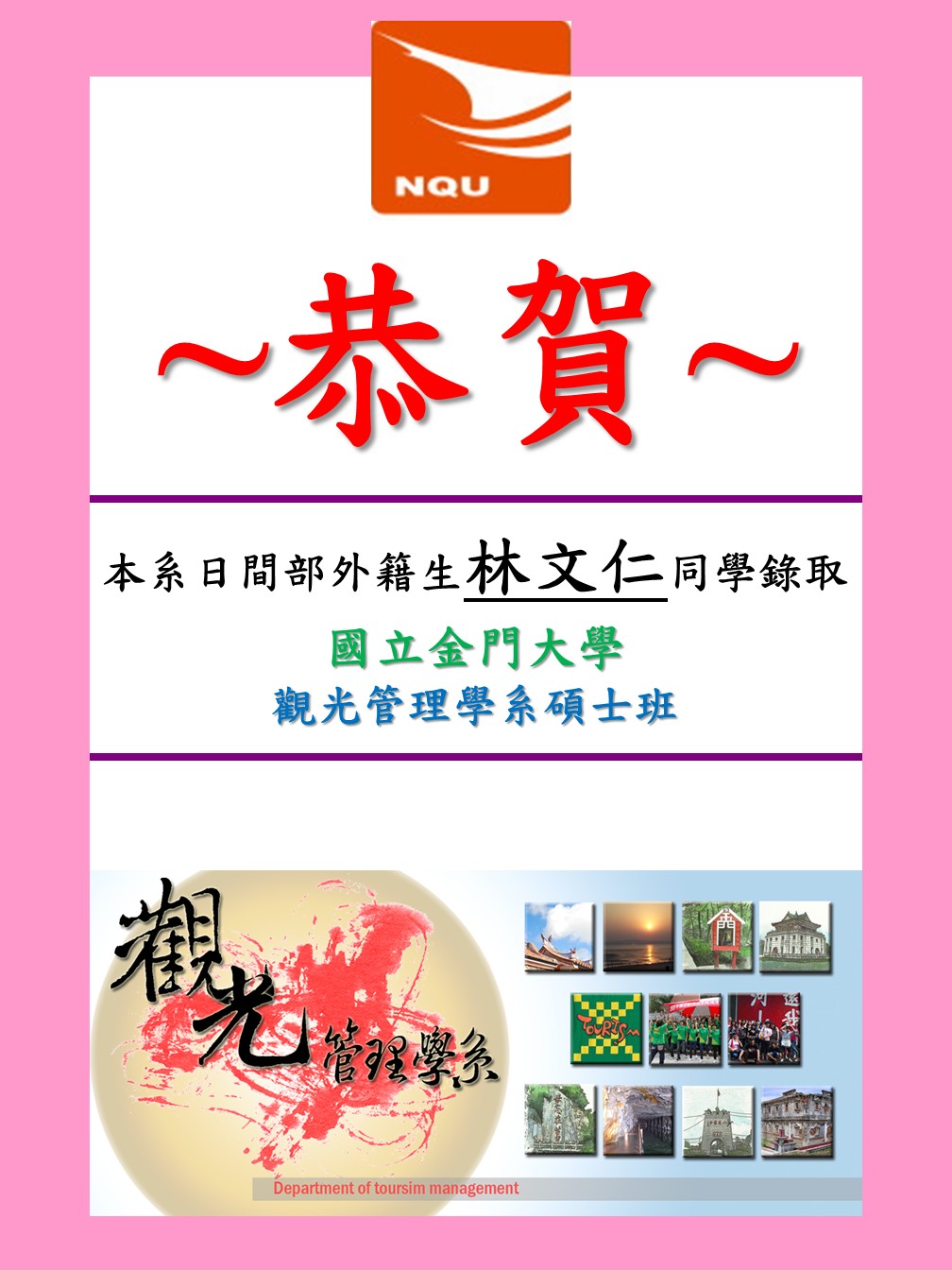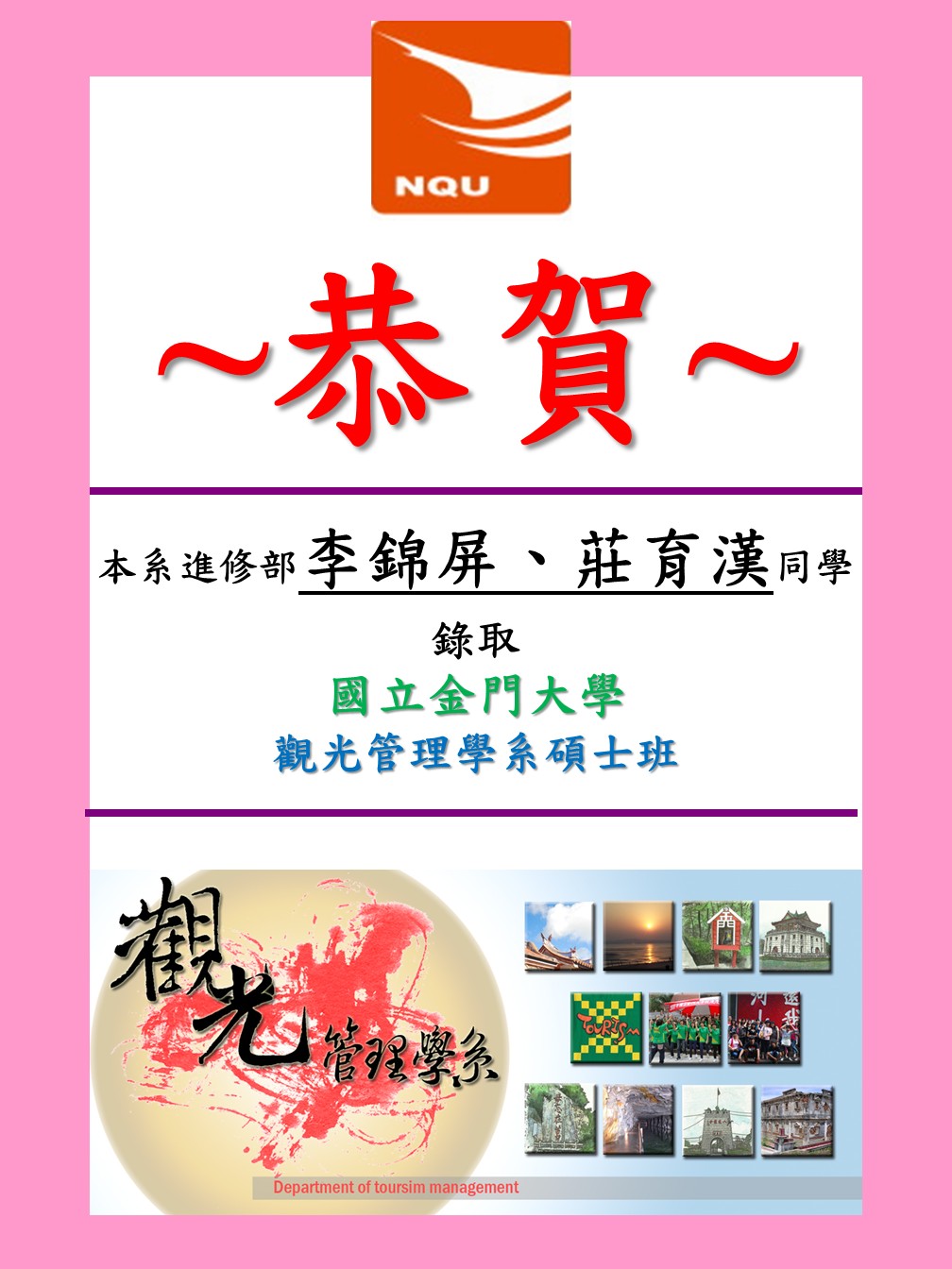 賀!!許植棋、羅于茜、林文仁、李錦屏、莊育漢同學考取國立金門大學研究所