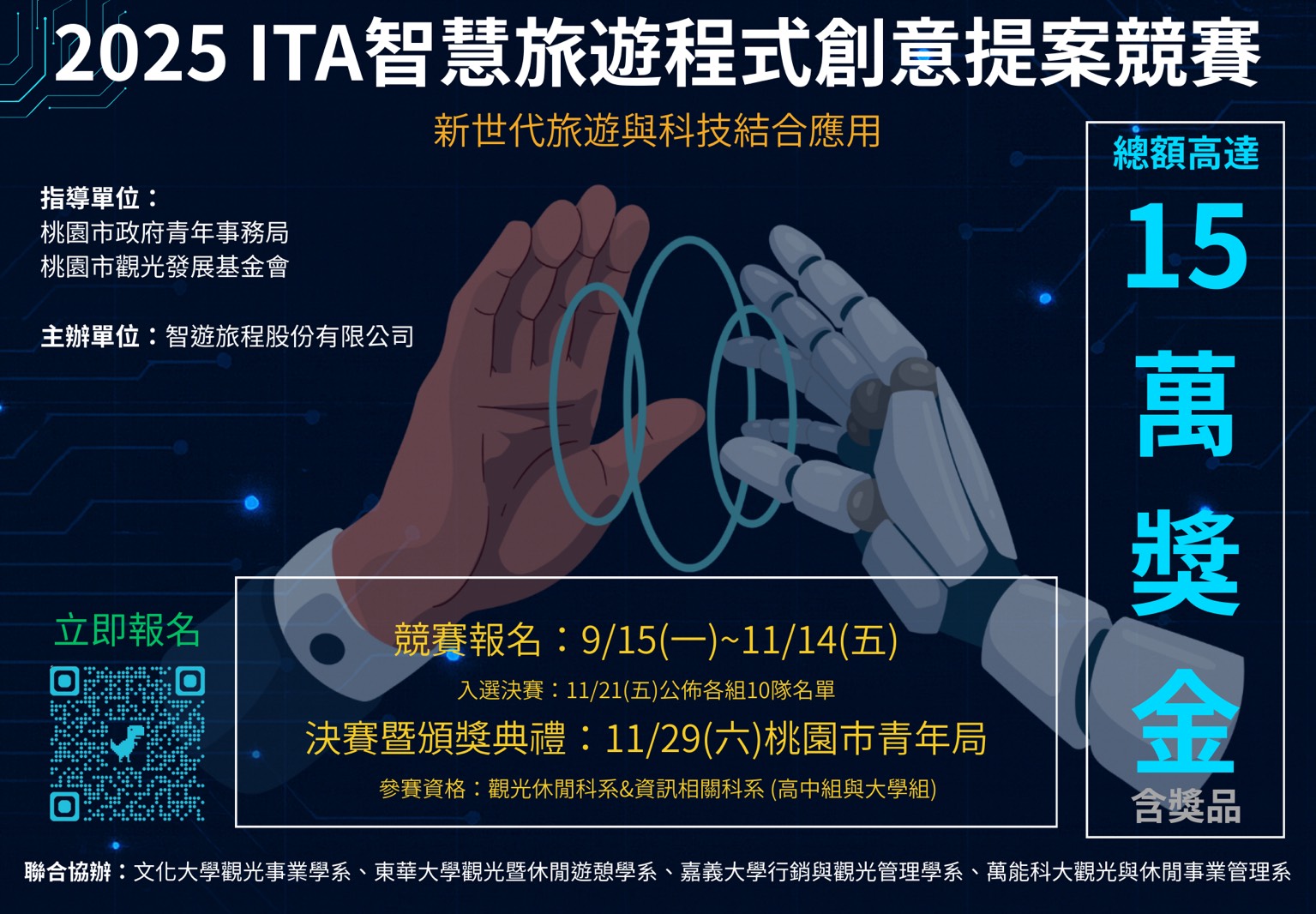 一、智遊旅程股份有限公司係本局所輔導之青年創業團隊,致力於協助觀光旅遊產業完成數位化轉型;為發掘新世代旅遊與科技結合之可能性,智遊旅程股份有限公司辦理「2025 ITA智慧旅遊程式創意提案競賽」,鼓勵全國青年學子共同發想提案。